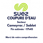 URGENCE – Coupure d’eau (SAUR) Une fuite a été détectée ce matin Route de Sablot. Pour l’intervention, l’opérateur SAUR a dû couper l’eau au niveau de la Route de Cameyrac. Temps de travaux annoncé à 14h45 : environ 3 h […]