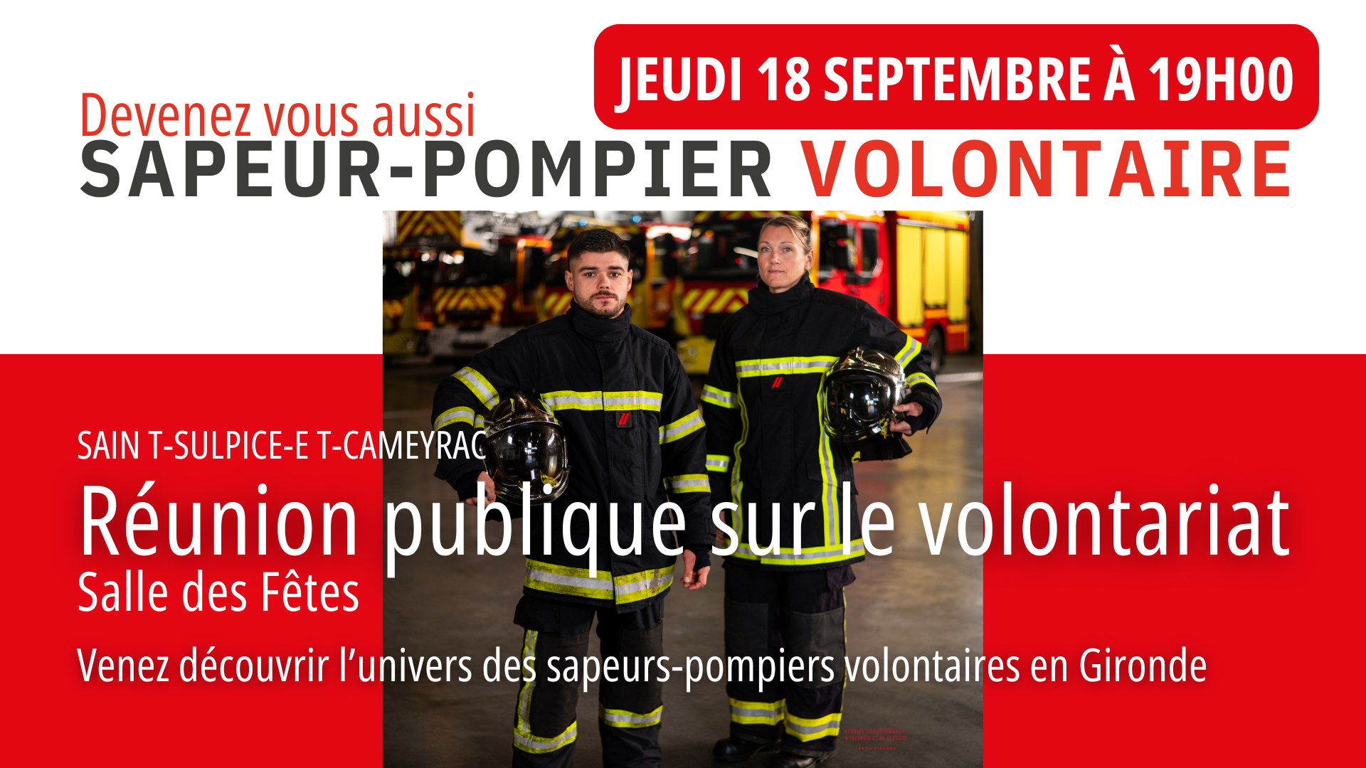Vous souhaitez contribuer à la sécurité de votre commune tout en développant des compétences précieuses ? Rejoignez l’équipe des sapeurs-pompiers volontaires du centre de secours de Saint-Sulpice et Cameyrac !